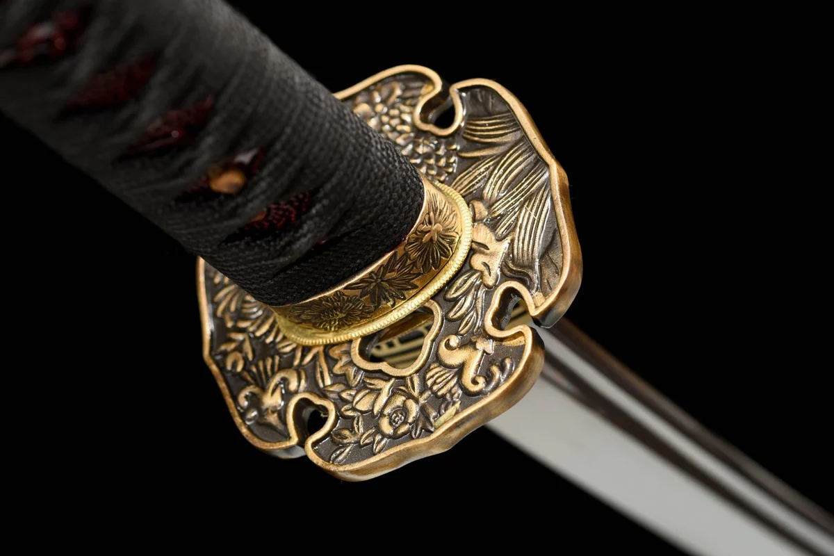 Die aus fein gearbeitetem Kupfer gefertigte Tsuba ist ein wahres Kunstwerk. Ihre detaillierten Gravuren sind eine Hommage an die traditionelle japanische Handwerkskunst und verleihen dem Katana eine zusätzliche visuelle Dimension, die es zu einem außergewöhnlichen Kunstobjekt erhebt.
