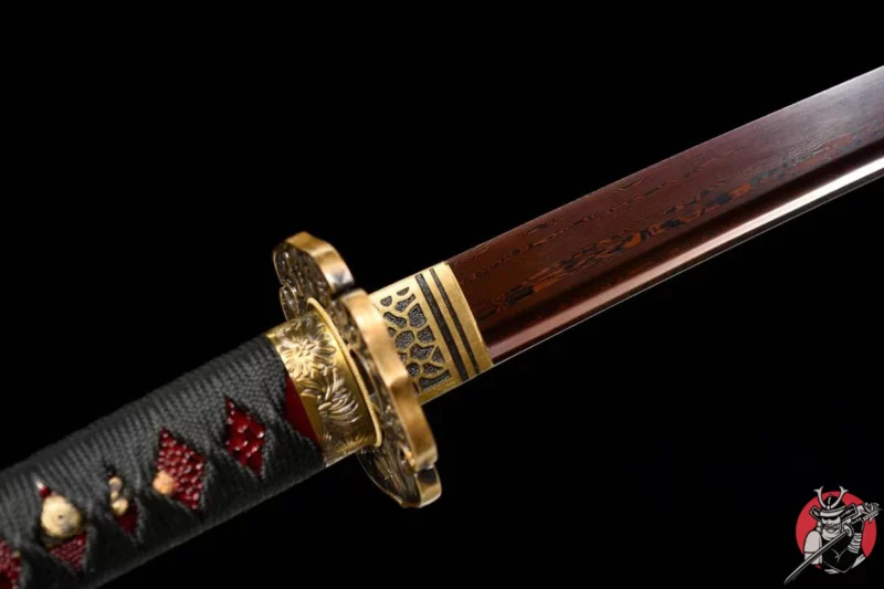 Der Tsuka ist mit rotem Rochenleder überzogen, das für seine Haltbarkeit und einzigartige Textur geschätzt wird. Dieses luxuriöse Material sorgt nicht nur für eine rutschfeste und komfortable Handhabung, sondern verleiht dem Katana auch eine exklusive Note. Der Griff gewährleistet maximale Kontrolle bei jeder Bewegung.